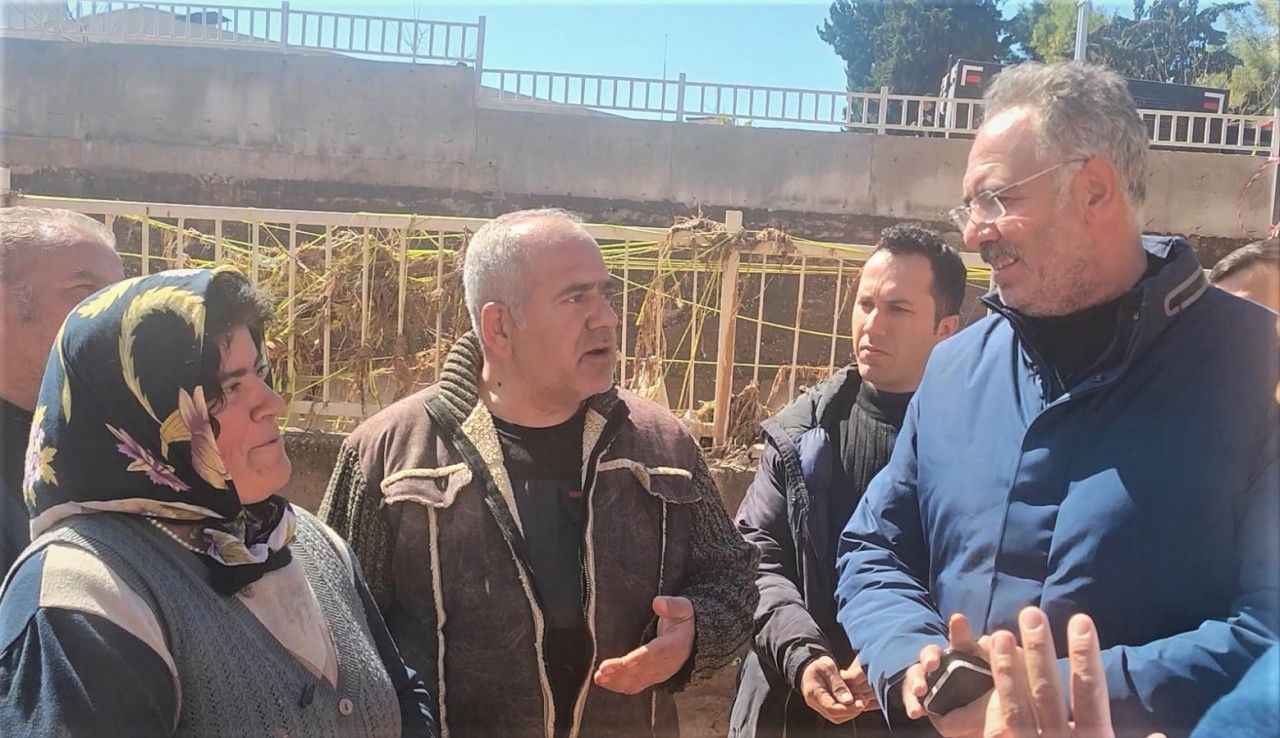 Mahalle Muhtarı Bozan Demir ile birlikte, selden etkilenen evleri tek tek