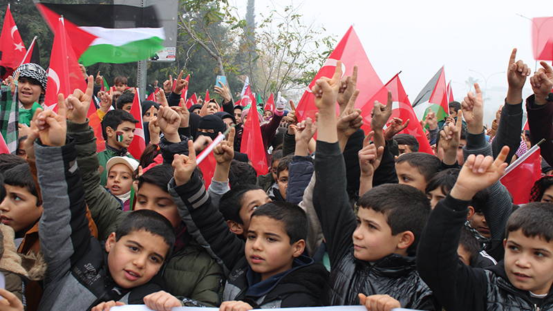 Çocukların Türkçe ve Arapça yaptığı basın açıklamasında Refah Sınır Kapısı’nın açılmasının önemine vurgu yapıldı.