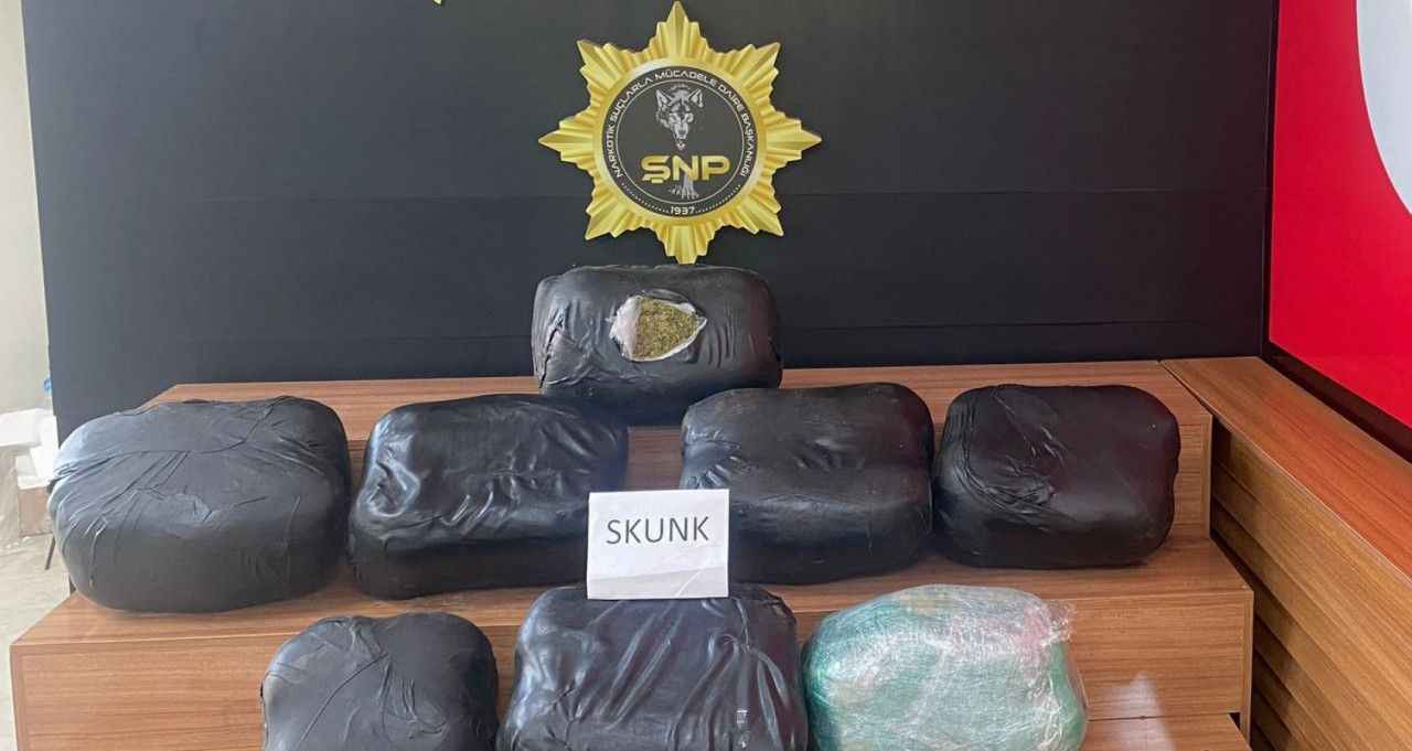 lastiğe sarılı halde 32250 gram skunk maddesi ele geçirildi.