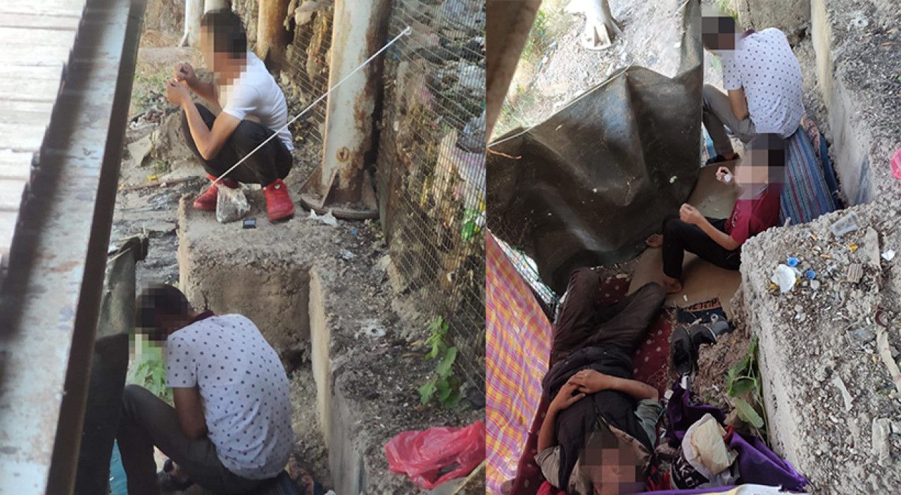 Kurban Bayramı’nın ikinci günü Hızmalı Köprü Karakoyun Deresi civarında çekildiği belirtilen fotoğraflarda, 10-12 yaşlarında çocukların uyuşturucu kullandıkları görülüyor.