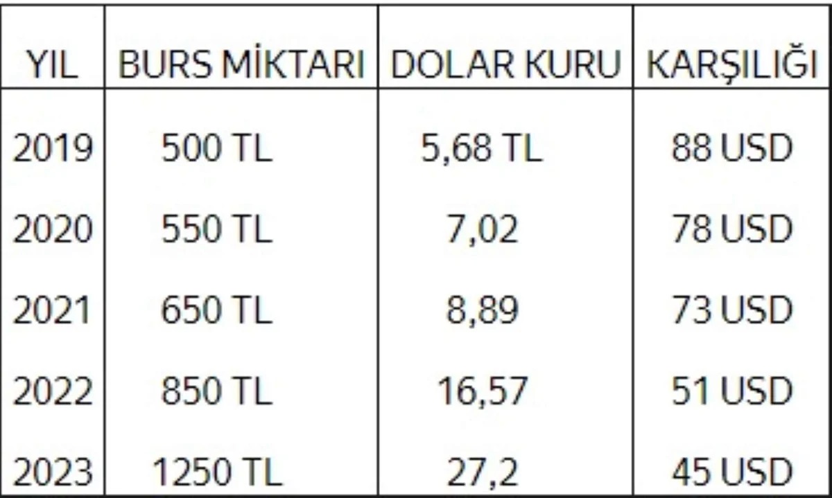 Kredi Yurtlar Kurumu (KYK) tarafından verilen burs ve krediyle yaşamaya çalışan çoğu öğrenci eğitim, beslenme, ulaşım ve diğer temel ihtiyaçlarını karşılamada büyük maddi sıkıntı yaşıyor. Öğrencilerin 3 öğün yemeklerine yetmeyen burs, her yıl TL bazında artsa da dolar karşısında eriyor ve öğrencilerin satın alma güçleri düşüyor.
