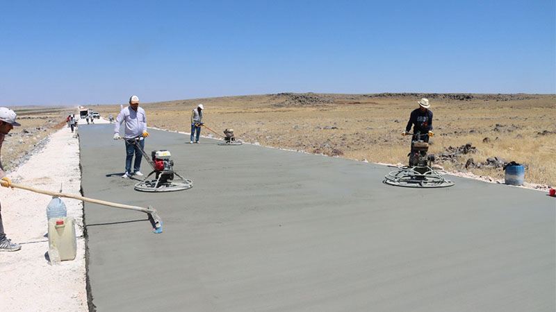 SİVEREK- Şanlıurfa Büyükşehir Belediyesi kırsal alanda yatırımlarını hızla sürdürerek daha konforlu yol ağını genişletiyor. Bu kapsamda Siverek ilçesinde uzun ömürlü olacak olan beton yol çalışmalarına devam ediyor.
