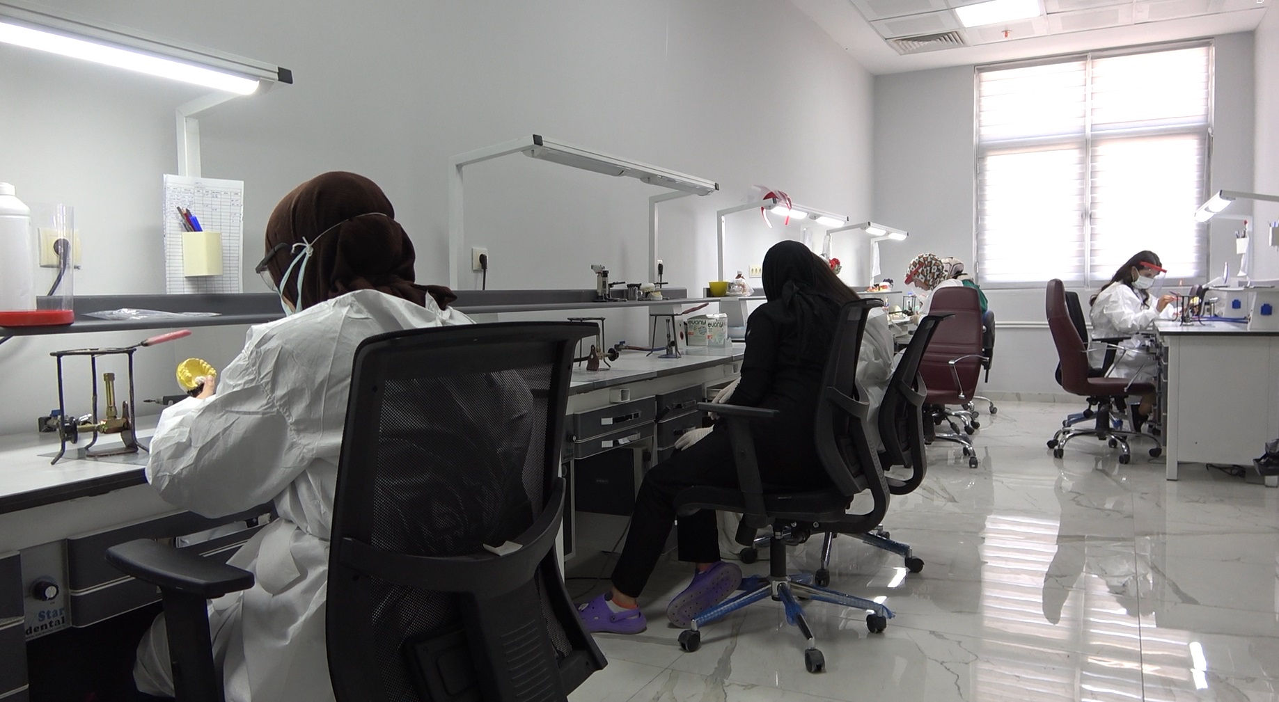 Diş protez teknikeri Zehra Kaya, “Toplamda burada on iki protez teknikeriyiz. Bu laboratuvara hekimden alınan ölçüler geliyor ve çeşitli aşamalardan geçerek halkımızın kullanabileceği protezler haline geliyor. Son sistem cihazlarla çalışıyoruz; masalarımız ve ekipmanlarımız son derece modern,” şeklinde bilgi verdi.