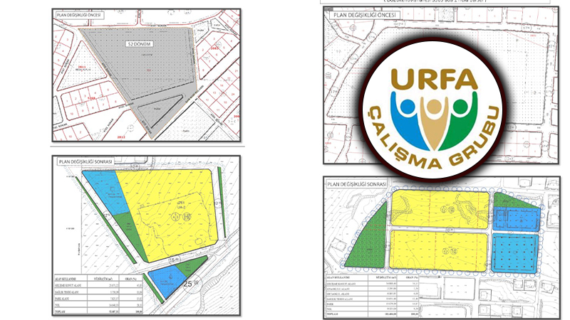 “Şanlıurfa İli, Karaköprü İlçesi, Doğukent Mahallesi, 3309 ada 2 ve 3 nolu parseller, 5936 ada 1,2,3 nolu parsellerde 101 dönümlük Kadın Doğum ve Çocuk Hastanesi alanı ve Batıkent Mahallesi 761 nolu parselde, yaklaşık 52 dönümlük yine sağlık tesis alanı, geçmişte imar plan değişikliği ile konut alanına dönüştürülerek satılmak istenilmişti.