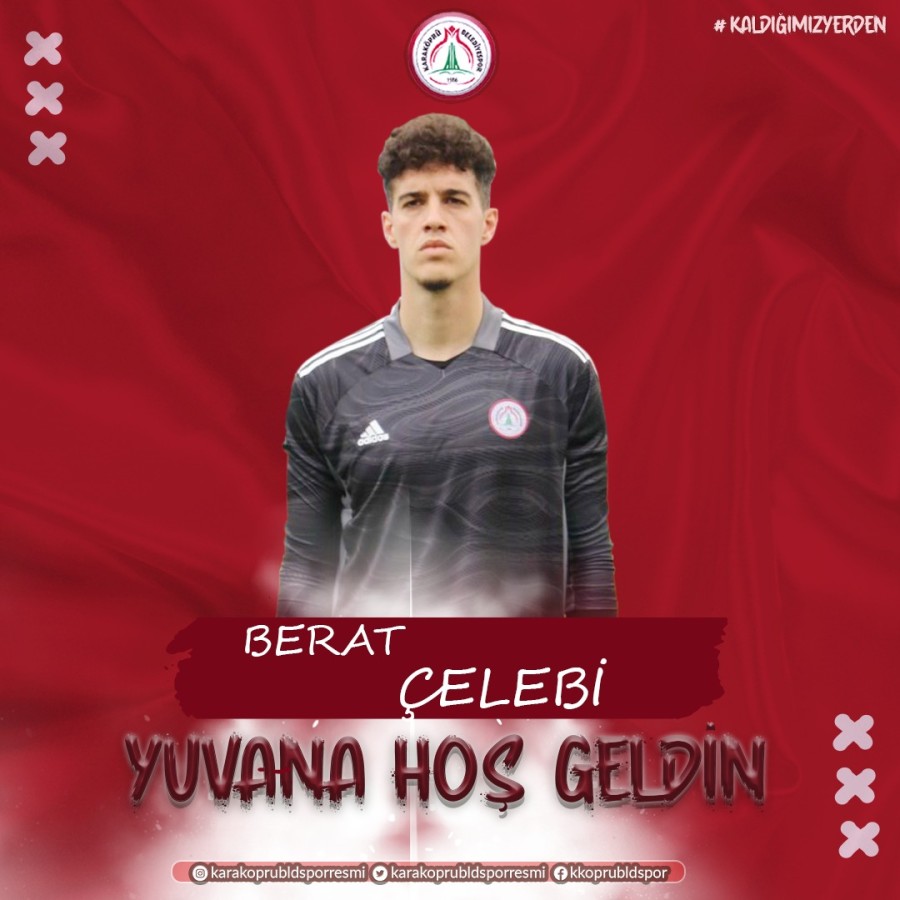 “YUVANA HOŞ GELDİN BERAT Karaköprü Belediyespor'umuz geçen sezon takımımızla play off oynama başarısı gösteren kalecimiz Berat Çelebi ile yeni sezon için sözleşme imzaladı. Kulübümüze ve futbolcumuza hayırlı olsun.”