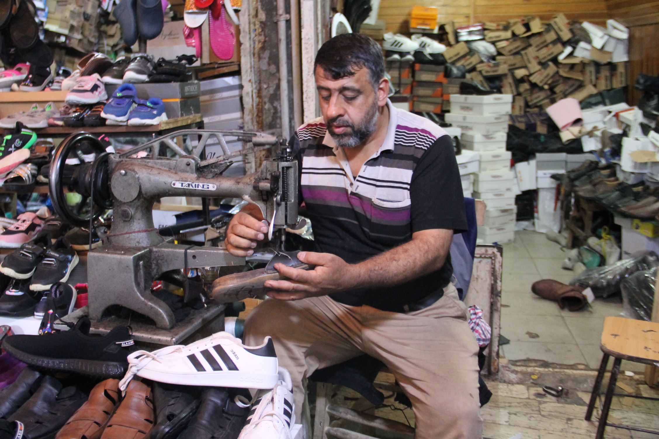 Şanlıurfa’nın Eyyübiye ilçesinde tarihi çarşılar bölgesinde ikinci el ayakkabı satışı ve tamiri yapan esnaf, vatandaşların yüksek fiyatlı ayakkabı almak yerine çözümü ayakkabılarını tamir ettirmekte veya ikinci el ayakkabı almakta bulduğunu kaydetti.