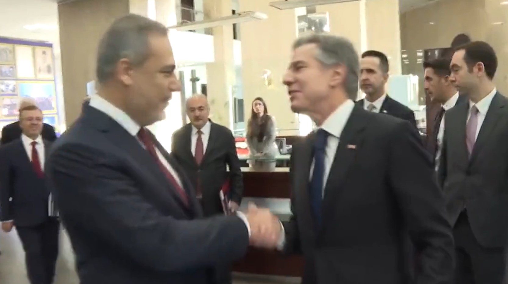 Fidan'ın bu tavrı, Blinken'ı kısa bir süre şaşırttı. Daha sonra Blinken Fidan'ın sadece elini sıkmak durumunda kaldı.