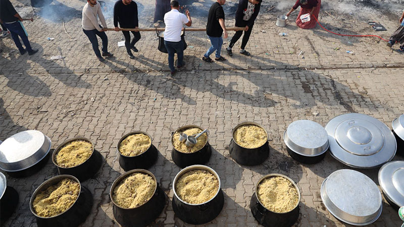 Köyün her evinden ayrımı yapılmaksızın toplanan veya getirilen yağ, pirinç, bulgur, tuz, odun, kurbanlık Şah Muhammed türbesi önünde kazanlara pişiriliyor.