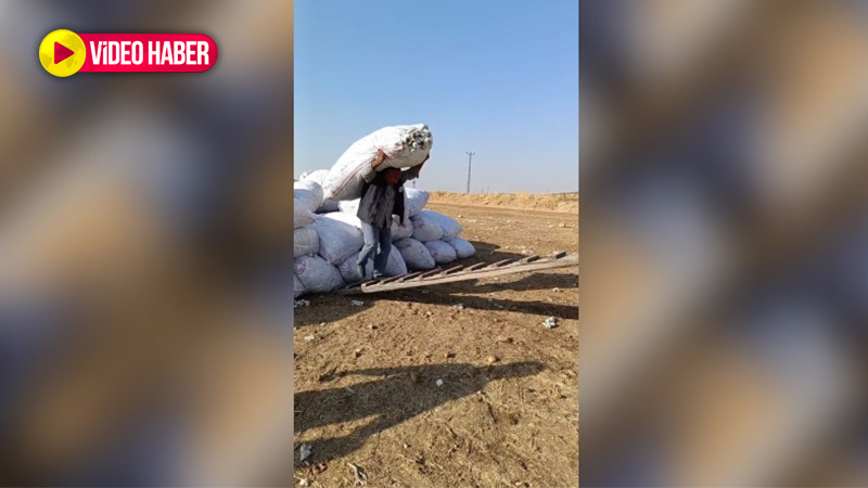 120 kiloluk pamuk çuvalını tek başına sırtlayıp kamyona yükleyen Derintaş, o anları “Heci Naim Süleymanoğlu” notuyla paylaştı.