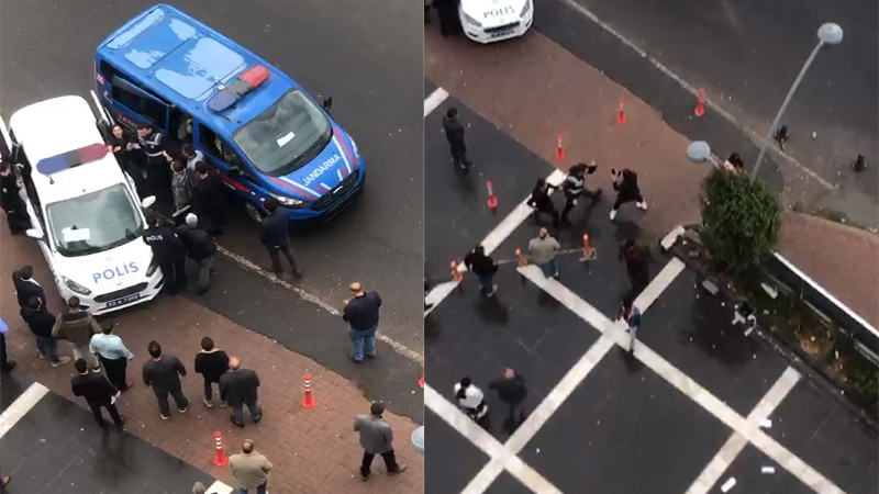 Dilber Beyaztaş’ı "Sizi ilgilendiren bir şey yok” diyerek iten polis memuru, cebinden çıkardığı biber gazı ile müdahale etmeye başladı.