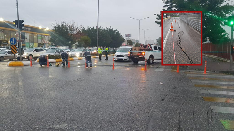 Yol çökmesi nedeniyle ulaşım, geçici olarak trafiğe kapatıldı.