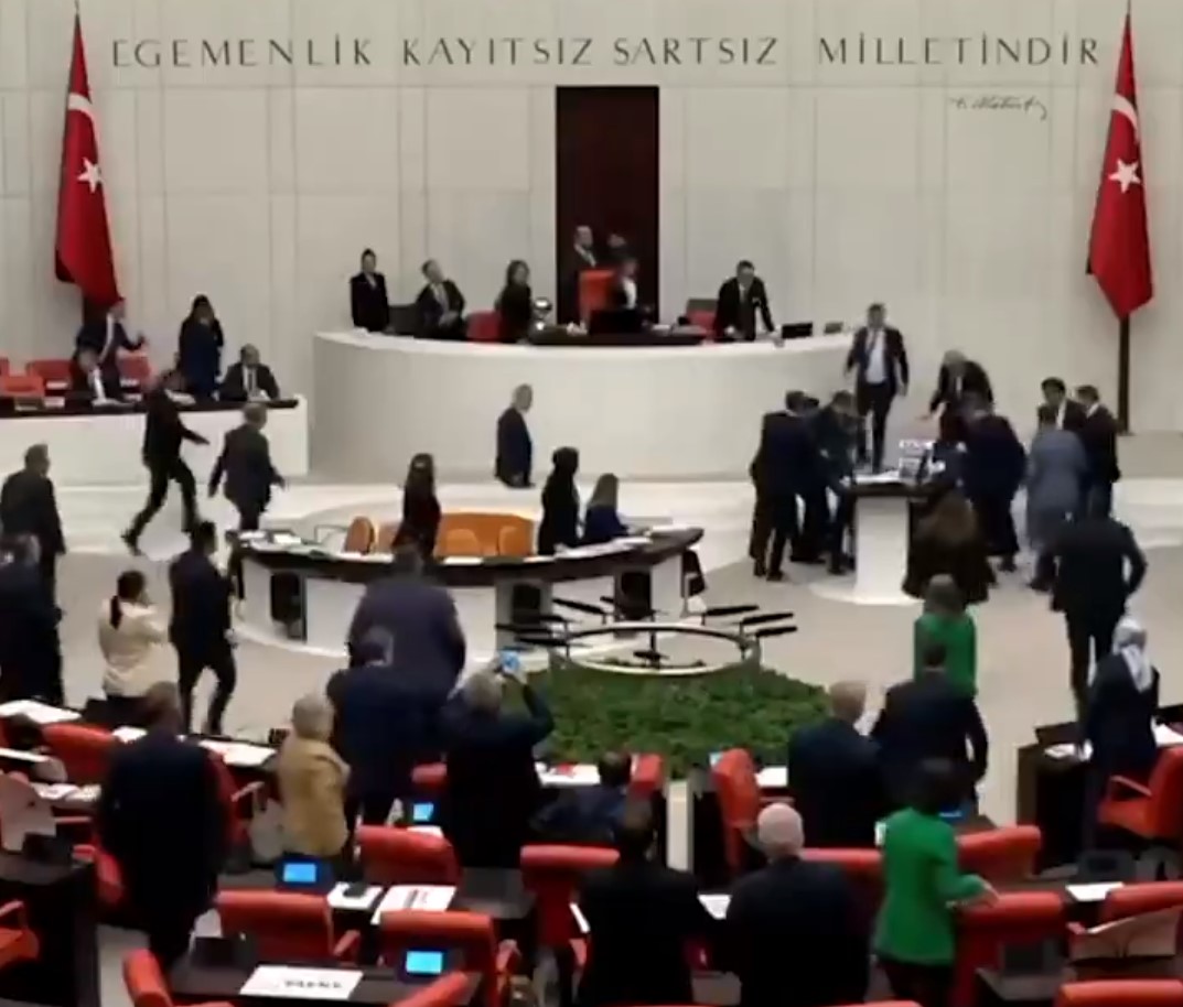 Bu sırada diğer milletvekilleri, kürsüye doğru koşarak, Bitmez'e müdahalede bulunmak istedi.