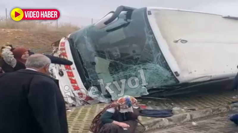 Kazada çarpışmanın etkisiyle yolcu otobüsü yoldan çıktı ve devrildi.