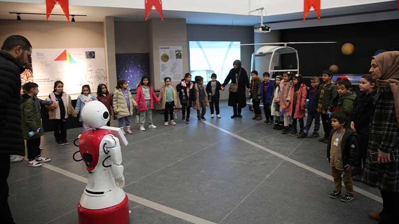 Bilim merkezinin sosyal robotu Ada ile de tanışan çocuklar bilim merkezi turunda meraklı ve mutlu görünürken, bilim merkezini ilçeye kazandıran Karaköprü Belediye Başkanı Metin Baydilli’ye teşekkür ettiler.