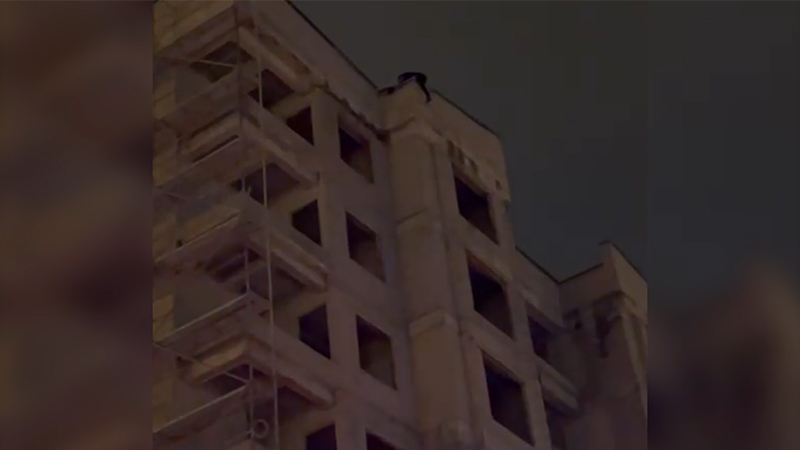 İddiaya göre, henüz bilinmeyen nedenle bir kişi, bir binanın en üst katına çıktı.