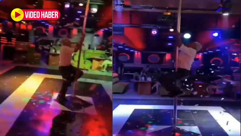 Yaşlı amca pavyonda direğe tırmandı! “Arsa gitti”