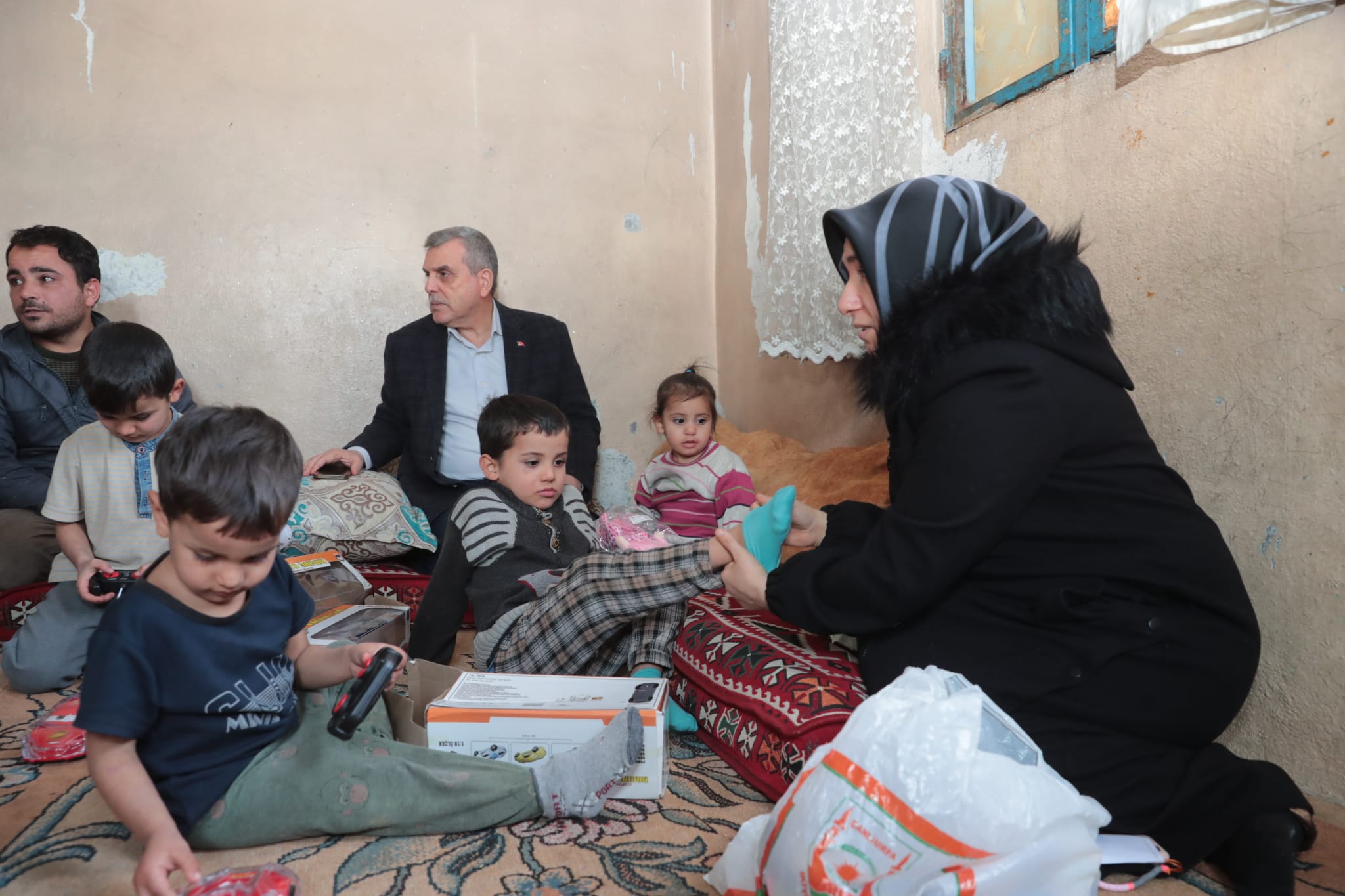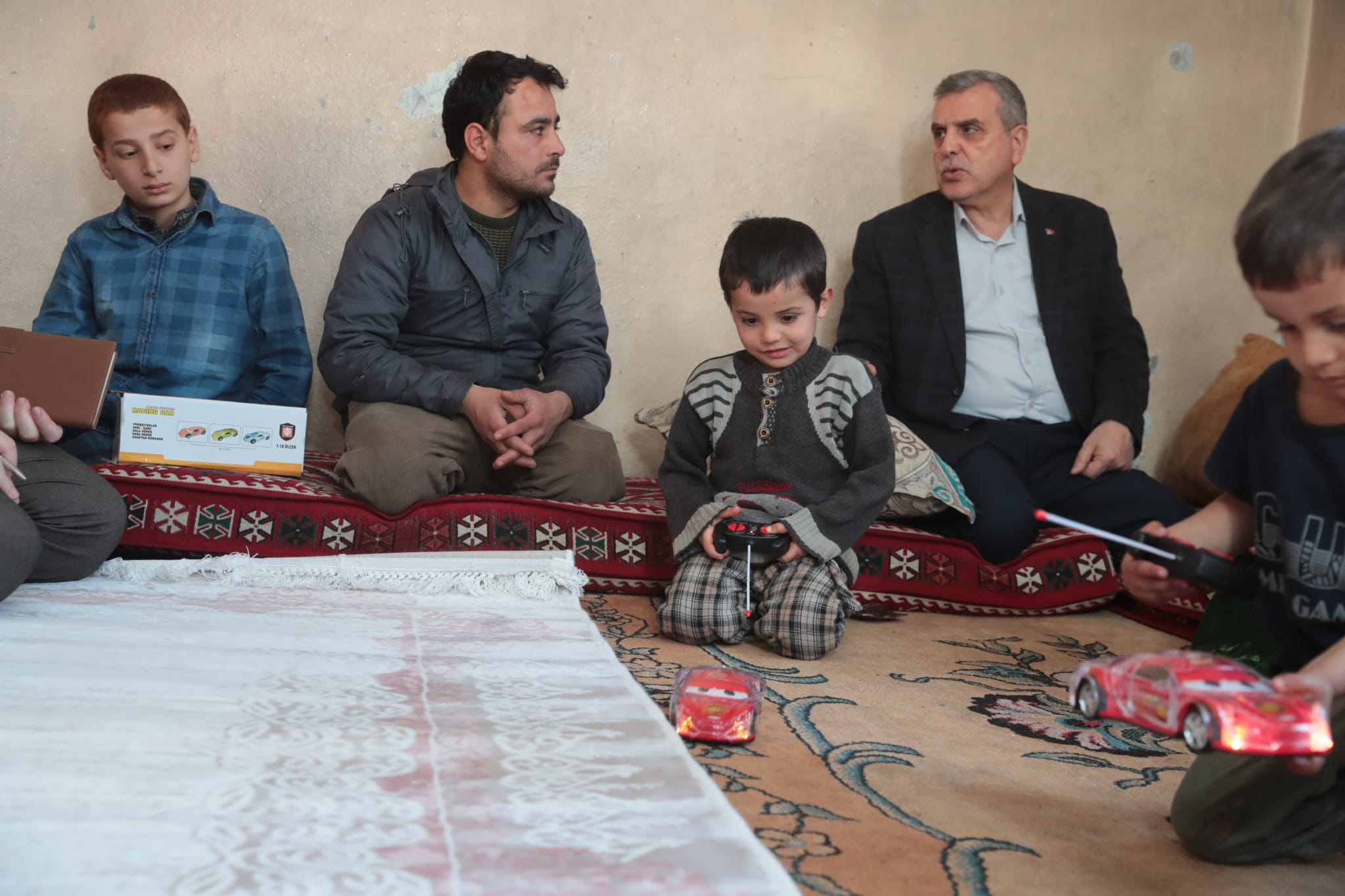 Beyazgül, ziyaret ettiği evlerde çocuklara da oyuncak dağıtarak, yakından ilgilendi.