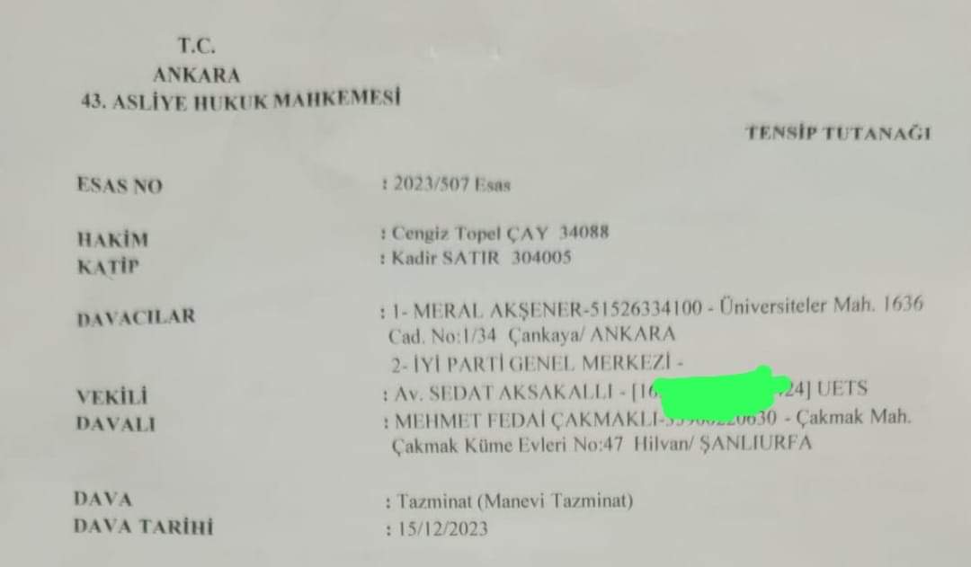 İYİ Parti'de peş peşe gelen istifaların ardından kendi yaşadıklarını ve gördüklerini katıldığı programlarda anlatan Mehmet Fedai Çakmaklı'ya Meral Akşener'in manevi tazminat dava açtığı ortaya çıktı.
