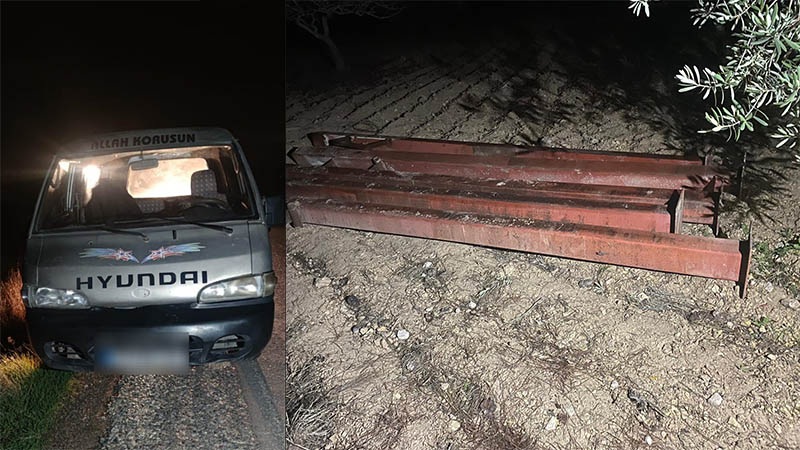 Jandarma devriye aracını gören şüpheli şahıslar çalmaya çalıştıkları demir direkleri ve kullanmış oldukları aracı olay yerinde bırakarak kaçmaya çalıştı. Yapılan fiziki takip sonucunda şüpheli E.P. ve Ş.S.A. isimli şahıslar saklandıkları akaryakıt istasyonunun tuvaletinde yakalandı.