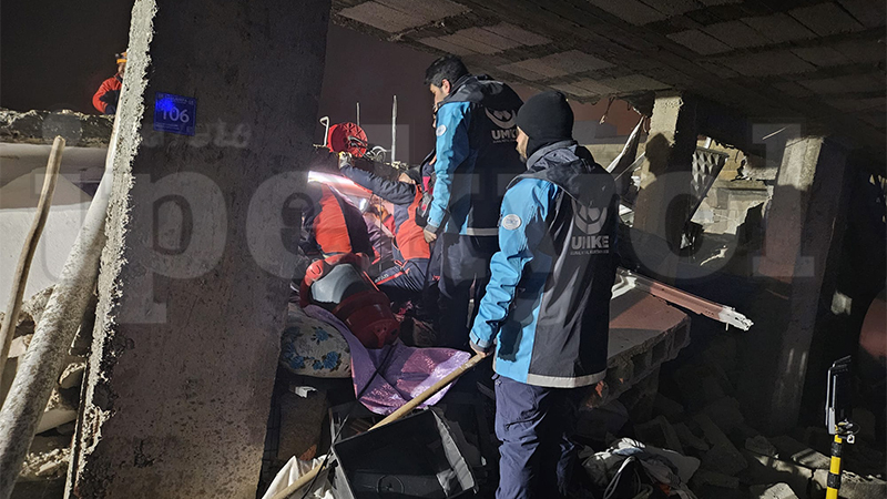 Olaya ait görüntüler de ortaya çıktı. Görüntülerde, ekiplerin enkaz altında kalan yaralıları kurtarmak için çalıştığı görülüyor.