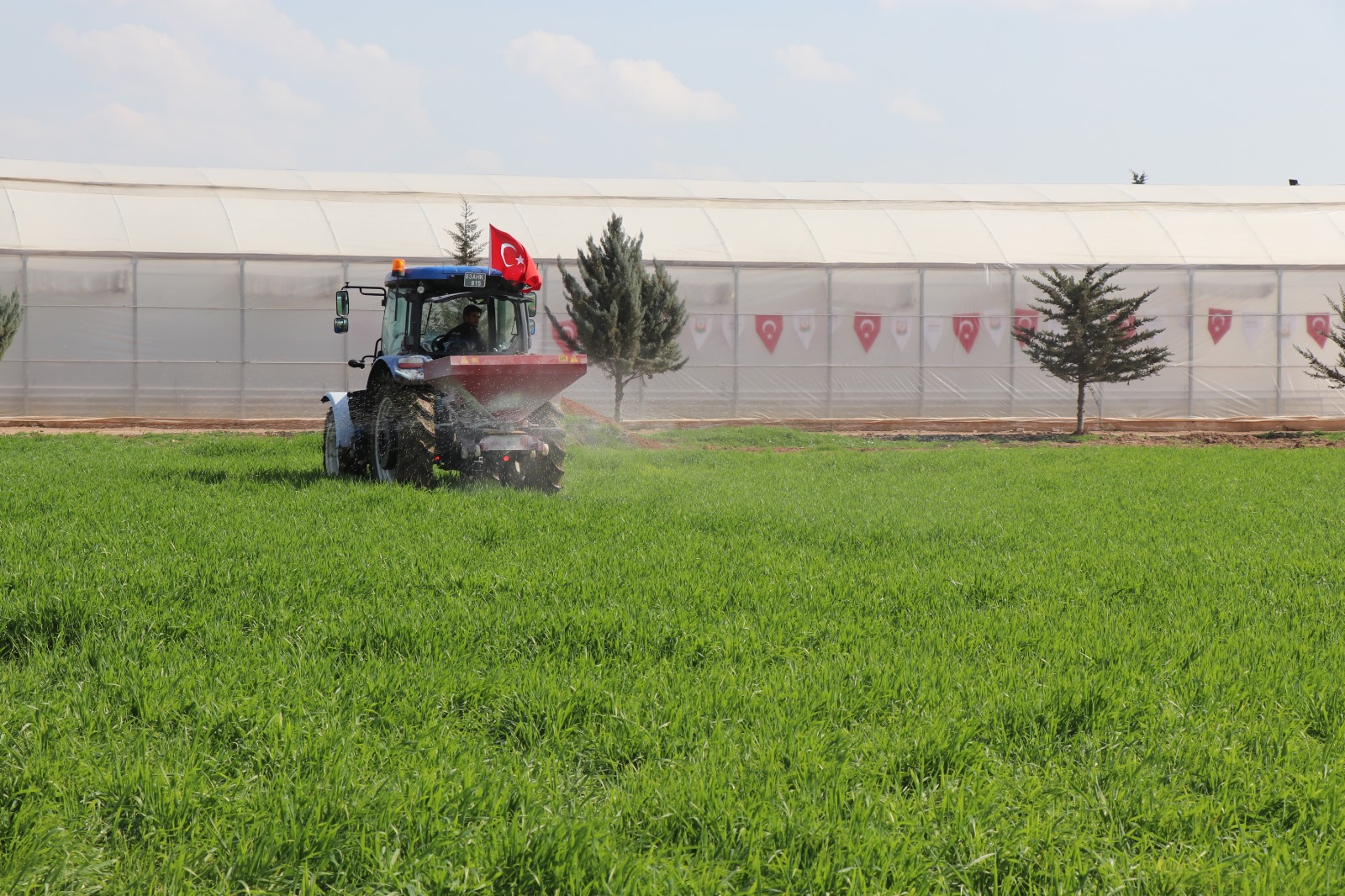 Şanlıurfa Büyükşehir Belediyesi Tarımsal Hizmetler Daire Başkanlığı 250 dekarlık alanda ektiği buğdayın sulama ve ilaçlama çalışmalarının yanı sıra gübreleme işlemini de gerçekleştirdi.