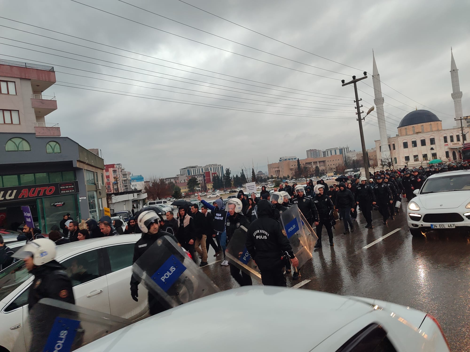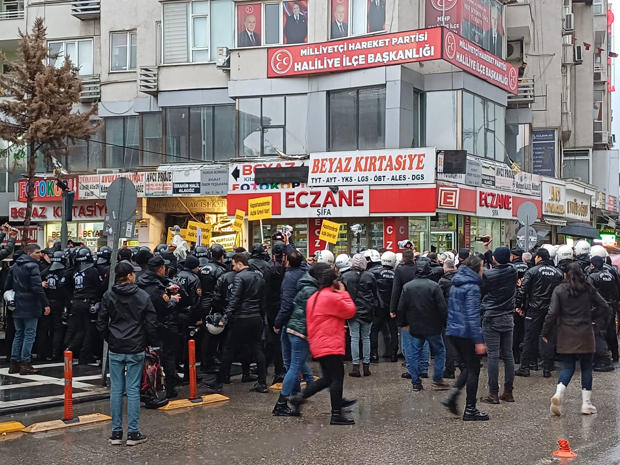 Olayların ardından toplanan grup çevik kuvvet eşliğinde DEM Parti Şanlıurfa İl binasına yürüdü.