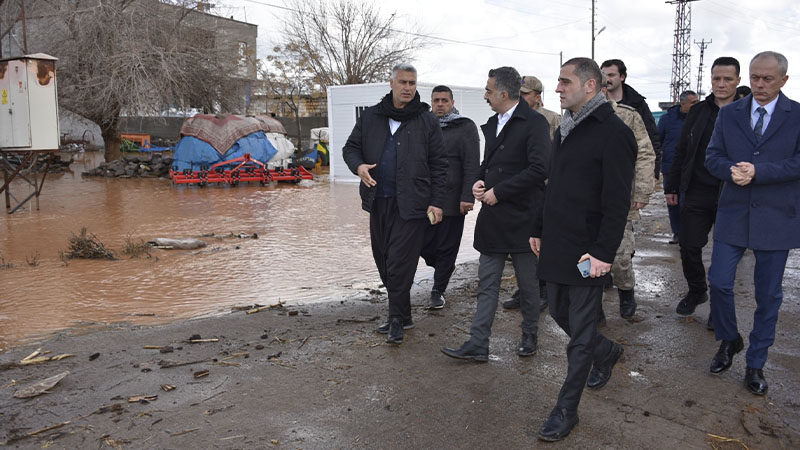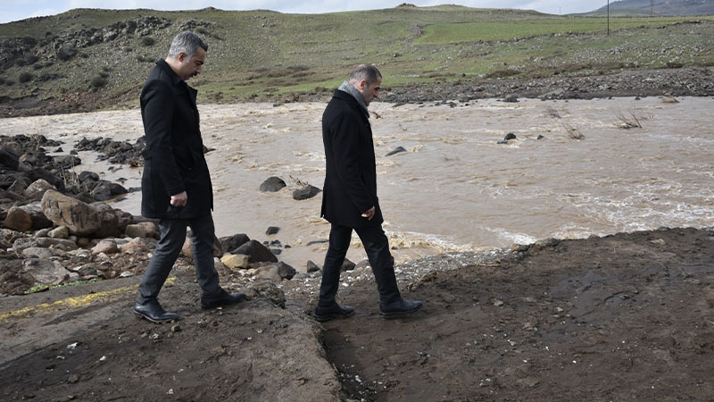Kırsal bölgedeki 10 mahalleye ulaşımın kesilmesi üzerine bölgeye giden Şanlıurfa Vali Yardımcısı Erinç Demir ve Siverek Kaymakamı Musa Aydemir bölgede incelemelerde bulundu.