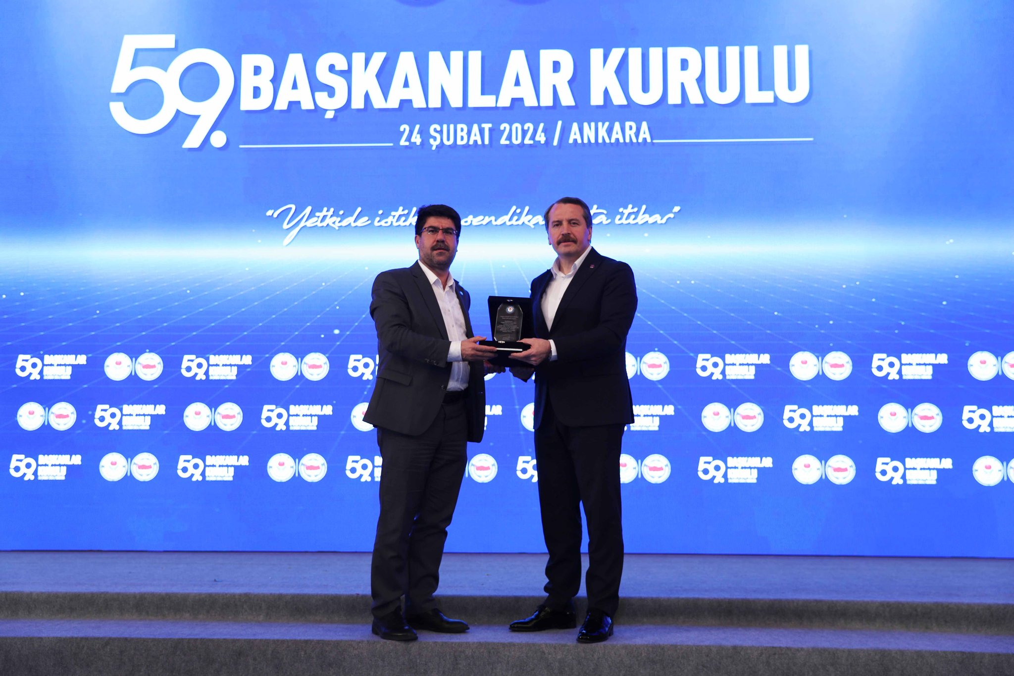 Memur-Sen ve Eğitim-Bir-Sen, 59. Başkanlar Kurulu toplantısı düzenledi. Önemli kararların alındığı toplantıda Genel Başkan Ali Yalçın, Şanlıurfa’da hedeflerine ulaşan il teşkilatına plaket verdi. Plaketi teşkilat adına Şanlıurfa İl Başkanı İbrahim Coşkun aldı.