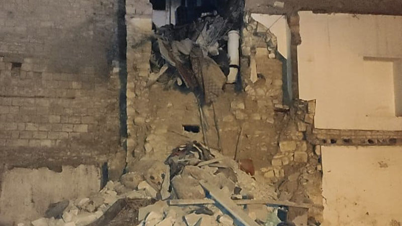İddiaya göre, eski bir evin en üst katındaki evin oturma odasının tabanı ve istinat duvarı henüz belirlenemeyen bir sebepten dolayı çöktü.