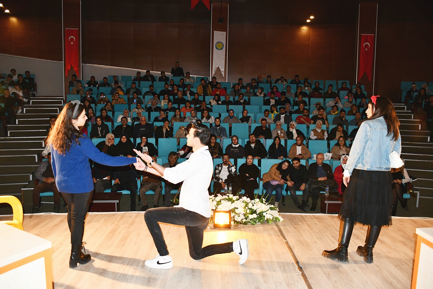 Müjdat Gezen ve Kandemir Konduk’un yazdığı tiyatro eserinden Faruk Bardakçı tarafından uyarlanan ve yönetilen gösteri, öğrenciler ve sanatseverlerin beğenisine sunuldu. Topluluğun özverili hazırlık süreci sonunda sergilediği oyun izleyicilerin beğenisini aldı.