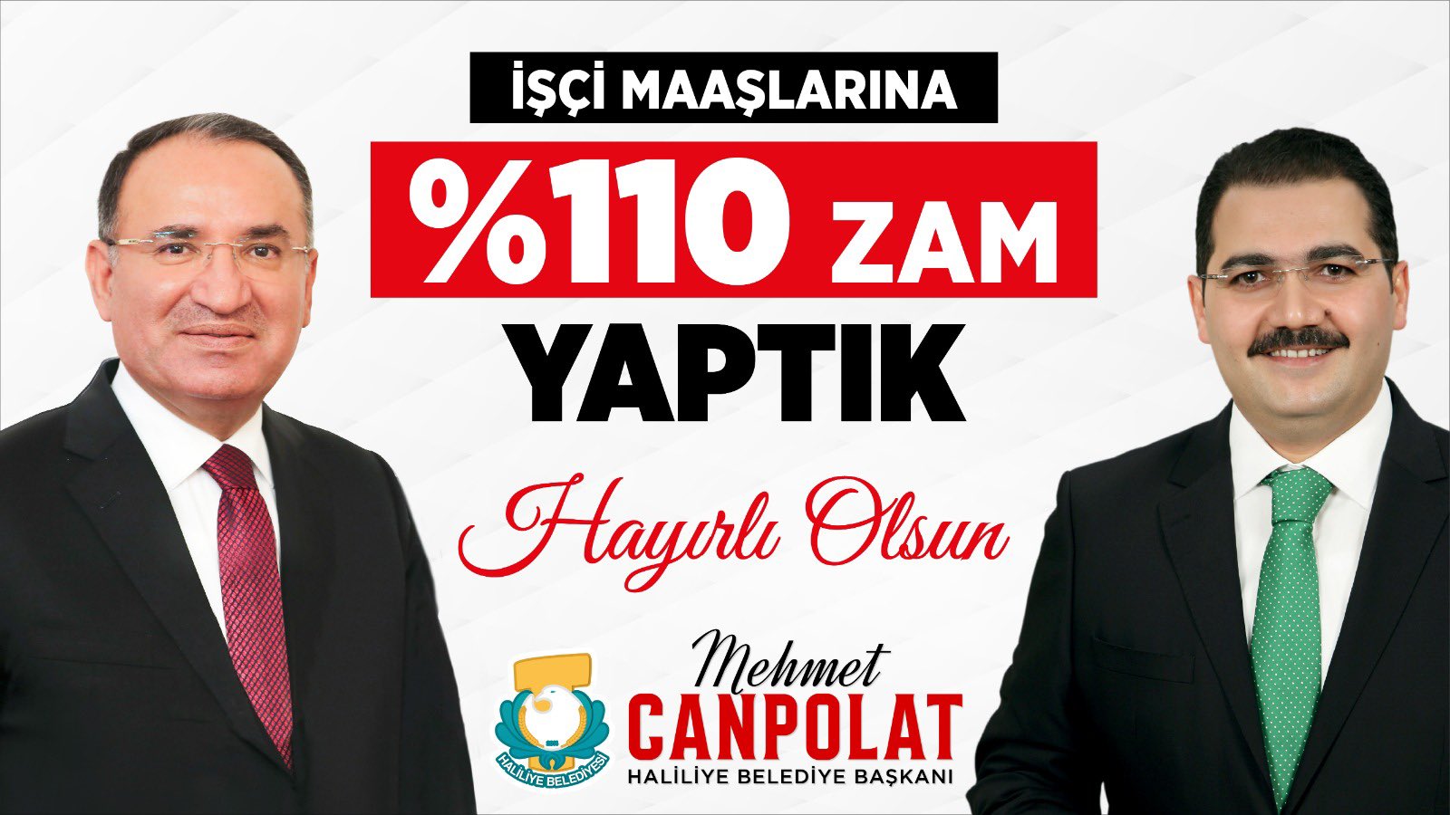 AK Parti Şanlıurfa Milletvekili Bekir Bozdağ ile beraber fotoğrafını paylaşan Canpolat, bbelediye bünyesindeki işçilkere yüzde 110 oranında zam yapıldığını açıkladı.