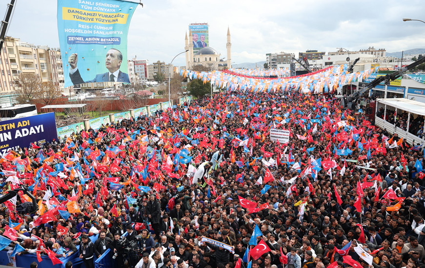 Erdoğan, konuşmasında Şanlıurfa'ya yapılan yatırımları anımsatarak "Yaparsa AK Parti yapar. Bunların yapacağı herhangi bir şey yok. Şanlıurfa'mıza, sakın ha yazık etmeyelim" sözleri ile yerel seçim uyarısında bulundu.