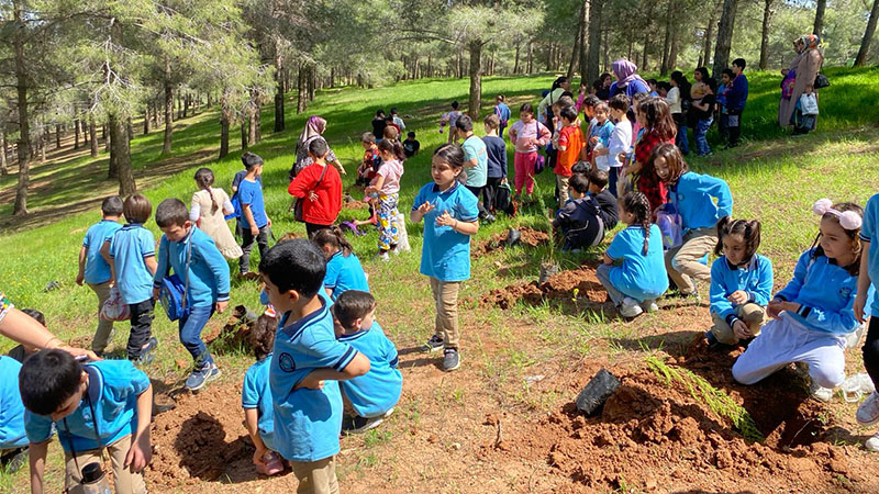 Karaköprü Yüzüncü Yıl İlkokulu öğrencileri, öğretmenleri ve velileri ile birlikte Doğa Eğitimi ve Ağaçlandırma etkinliğine katıldı