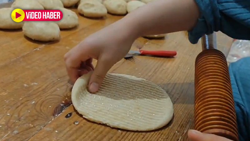 Dinlenen bu hamurdan orta büyüklükte hamur parçaları koparılarak hamur bezeleri hazırlanır, bezeler merdane ile açılır. Yaklaşık 20 cm çapında ve 1-2 cm kalınlığında açılan hamur, dört eşit parçaya bölünerek üçgen şeklinde yada kare şeklinde hazırlanır.