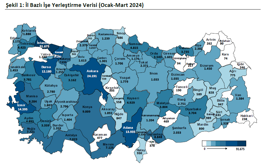 İŞKUR istatistiklerine göre Şanlıurfa'da ise yılın ilk üç ayında 2 bin 33 kişi kurum aracılığıyla işe yerleşti.