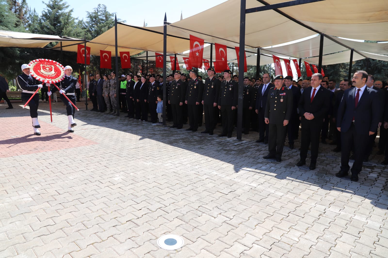 Çelenk sunma töreni, şehitler için edilen dualar ve kabirlere karanfillerin bırakılması ile sona erdi.