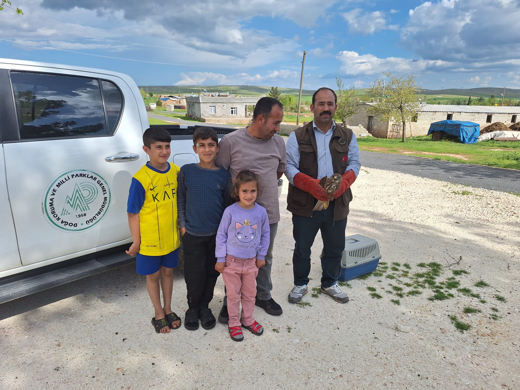 Vatandaşların bilgilendirmesiyle Doğa Koruma ve Milli Parklar (DKMP) Şanlıurfa Şube Müdürlüğü ekipleri kızıl şahini tedavi etmek üzere teslim aldı.