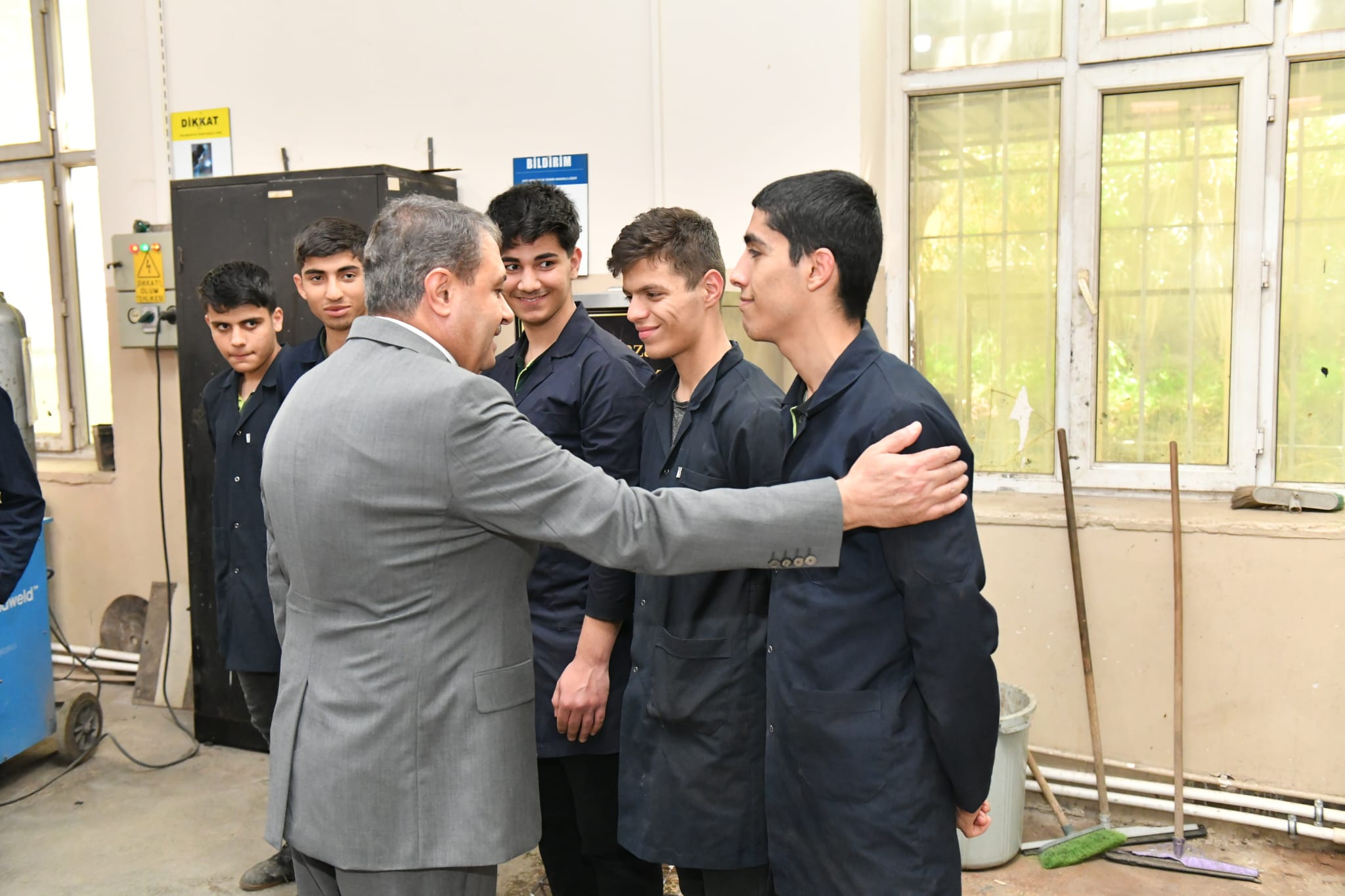 Eğitim kurumları ziyaretlerine devam eden Vali Hasan Şıldak’ın cuma günü öğleden sonra adresi Urfa Mesleki ve Teknik Anadolu Lisesi oldu. Okul ziyaretinde ilk olarak bahçede öğrenci grupları ile bir araya gelen Vali Şıldak, okulun eğitim yönünden geniş kapsamlı bir kampüs olduğuna dikkat çekerek mesleki eğitimin önemine değindi. Ardından atölyeleri gezen ve çalışmalar hakkında bilgi alan Vali Şıldak, nitelikli insan gücünün ülke ekonomisine katkısında meslek liselerinin önemli bir yere sahip olduğunu söyledi.