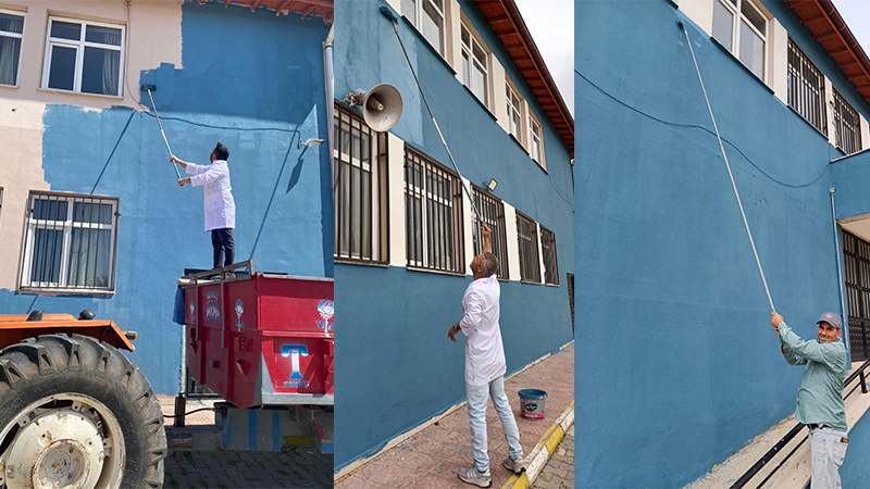 Okullarının boyayıp güzelleştirilmesi için beklenen yardımların gelmemesi üzerine, bu sorunu kendi elleriyle çözmeye karar veren ekip, okullarını kendi imkanlarıyla boyadı ve güzelleştirdi.