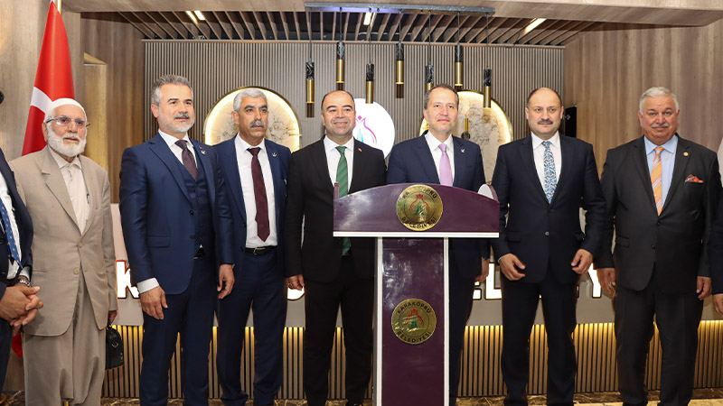 Ziyarette günün anısına şeref defterini imzalayıp mesajını yazan Dr. Fatih Erbakan Karaköprü Belediye Başkanı Nihat Çiftçi, belediye meclis üyeleri ve parti teşkilatı ile hatıra fotoğrafı çekildi.