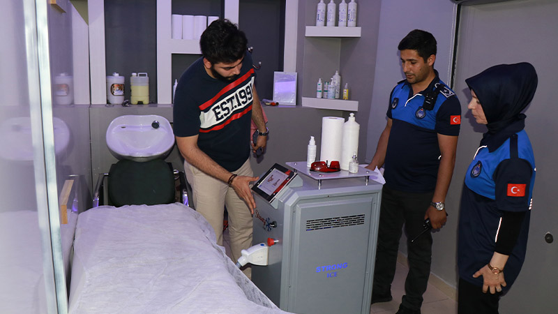 Şanlıurfa İl Sağlık Müdürlüğüne bağlı ekipler ve Haliliye Belediyesi Zabıta Müdürlüğü ekipleri, ilçenin işlek noktalarından biri olan Devteyşti Mahallesinde güzellik merkezlerini denetledi. Güzellik merkezleri ve kuaförlere yönelik iş yeri açma ve çalışma ruhsatı kontrollerini yapan ekipler, ruhsatı bulunmayan işletme sahiplerini Haliliye Belediyesi Zabıta Müdürlüğüne bağlı ruhsat birimine yönlendirdi. Denetim esnasında kullanılan ürünlerin son kullanma tarihlerini de inceleyen ekipler, vatandaşların sağlığı için kullanılması yasak olan ürünlerin bulundurulmaması gerektiğini belirtti. Güzellik merkezlerinin sık sık havalandırılması gerektiğini belirten zabıta ekipleri, hijyenin sağlanması adına tek kullanımlık ürünler kullanılması noktasında hassas olunması gerektiğini ifade etti.