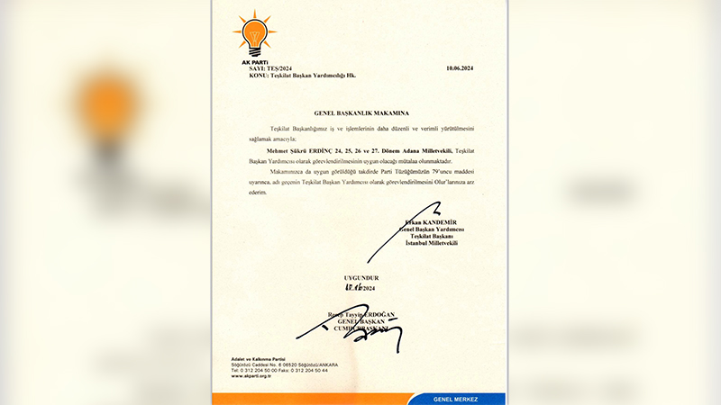 Cumhurbaşkanı ve AK Parti Genel Başkanı Recep Tayyip Erdoğan’ın tensipleriyle partinin Genel Merkez Teşkilat Başkan Yardımcılığı görevlerine Ankara Milletvekili Kurtcan Çelebi ve Mehmet Şükrü Erdinç getirildi.