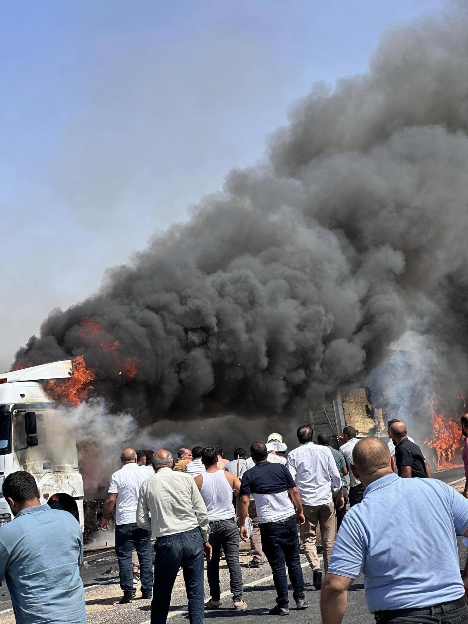 Yangın, Şanlıurfa- Akçakale karayolu Uğurlu Mahallesi’nde meydana geldi. İddiaya göre, henüz sürücüsü öğrenilmeyen 81 EZ 573 plakalı saman yüklü tırın dorse kısmında yangın çıktı. Yangın bir anda bütün dorseyi kapladı, alevleri gören sürücü aracı durdurarak yardım istedi.