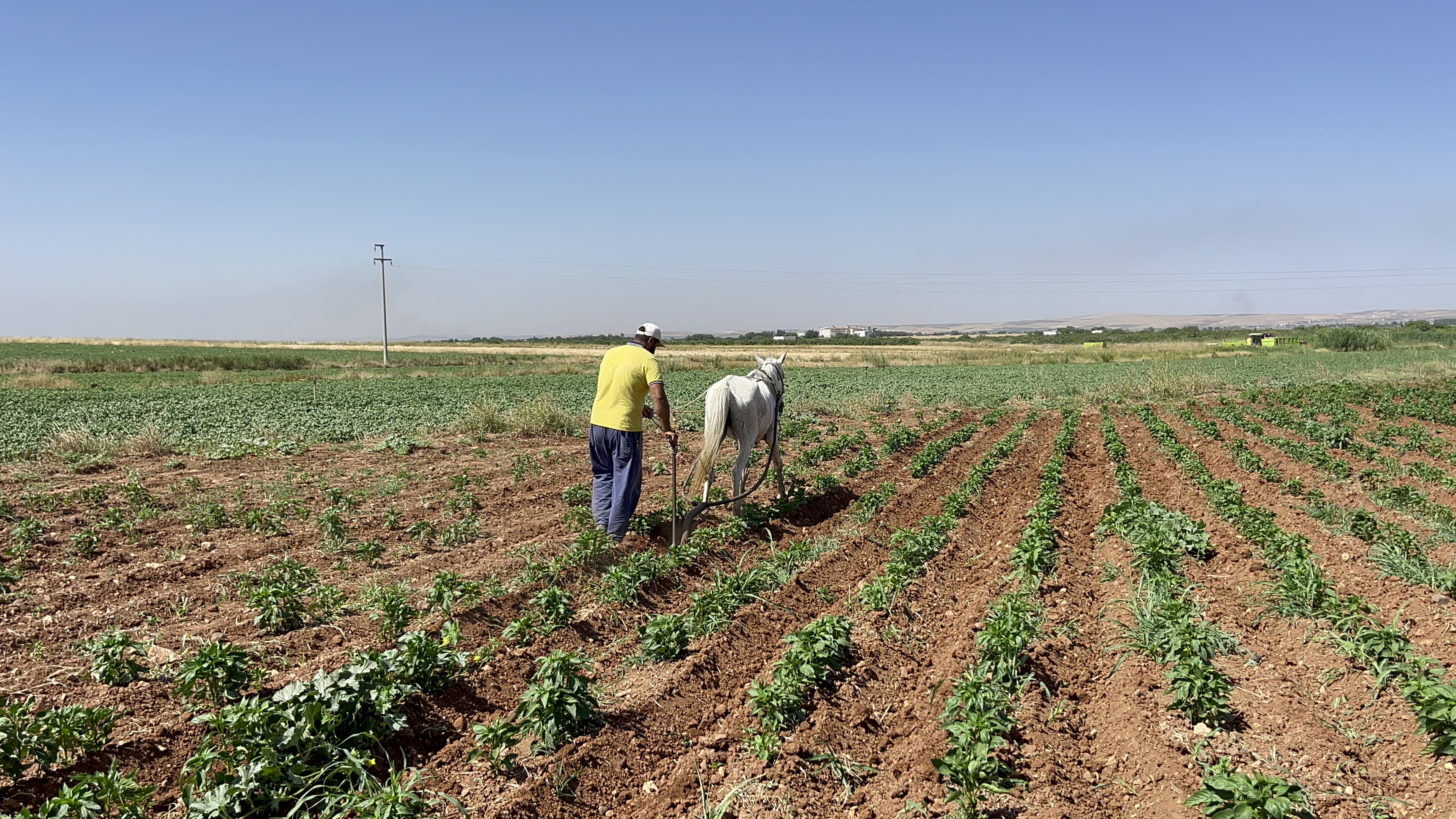 Yükselen yakıt fiyatları, tarım sektöründe köklü değişikliklere yol açıyor. Suruç'ta bir çiftçi, traktörü olmasına rağmen çapa makinesi alamadığı için at ile tarlasını sürmeye başladı.