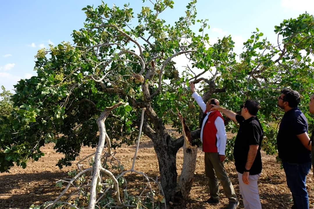 Birecik Kaymakamı Mustafa Gürbüz, İlçe Tarım ve Orman Müdürü Mehmet Kandamar ile birlikte ilçede meydana gelen fırtınada fıstık ağaçlarını sökmüştü zarar gören fıstık bahçelerini ve çiftçileri ziyaret etti.