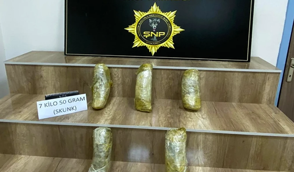 Durdurulan otomobilde arama yapan ekipler, 5 parça halinde 7 kilo 50 gram uyuşturucu ele geçirdi.