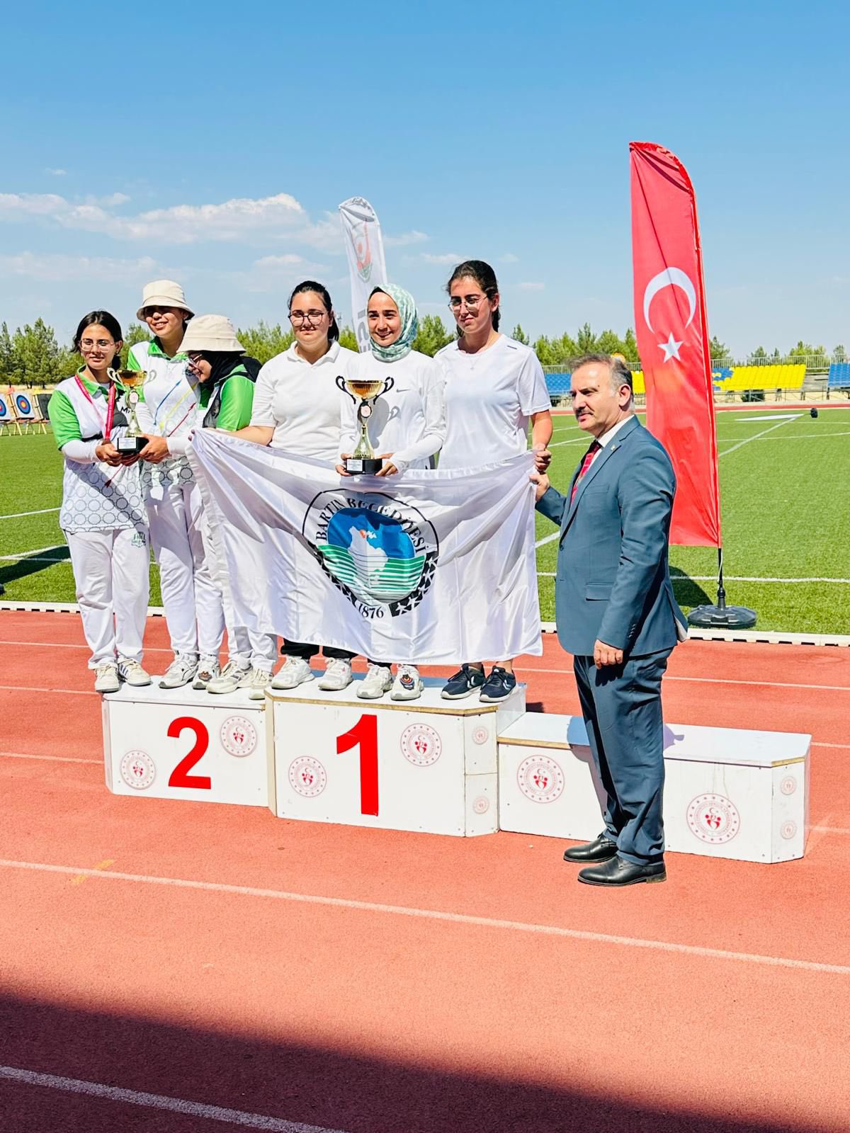 “Başkanı M. Kasım Gülpınar ve Rektörümüz Prof.Dr. M.Tahir Güllüoğlu, BESYO tesislerimizde gerçekleşen Göbeklitepe Cup 3 Açık Hava Okçuluk Yarışmasında dereceye giren sporculara ödüllerini takdim ettiler.