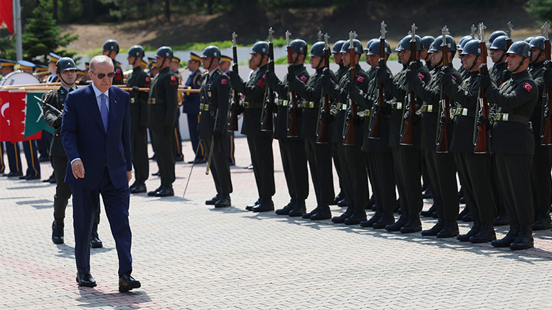 "15 Temmuz hain darbe girişimi sonrasında kurduğumuz Milli Savunma Üniversitemiz, kuruluş misyonunu büyük bir başarıyla yerine getiriyor. Yolumuz da yönümüz de ileriye dönüktür. Askeri eğitim sistemimizin aynı kalması geriye gitmesi asla tahayyül edilemez. Vatan savunması dahil hiçbir alanda geriye gidişe müsaade etmeyeceğiz. Coğrafi bakımdan stratejik avantajlar sunduğu kadar tehditleri de beraberinde getiren konumda yer alıyoruz. Rusya ile Ukrayna arasındaki savaş 2,5 yılını geride bırakmak üzere. Yakın gelecekte savaşı sona erdirmeye dönük güçlü bir irade de görülmüyor. Bölgemizin bir müddet daha savaşın yükünü çekmeye devam edeceği anlaşılıyor.