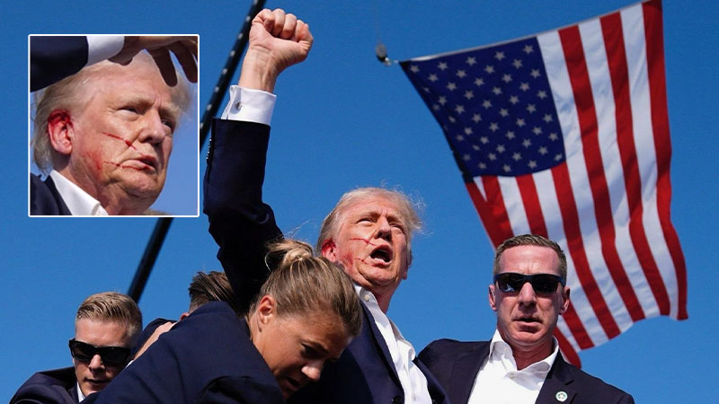 Eski Amerika Birleşik Devletleri Başkanı Donald Trump'ın, Pensilvanya Eyaleti’ndeki mitingi sırasında kürsüde konuşurken, silah sesleri duyuldu.