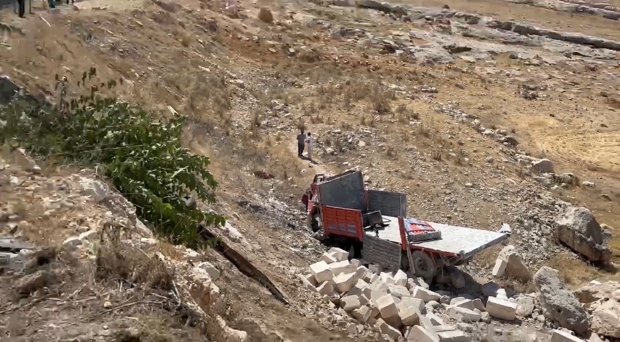İddiaya göre, henüz sürücüsü ve plakası öğrenilmeyen mermer yüklü kamyon, freninin boşalması sonucu sürücünün müdahalesine rağmen durdurulamayarak metrelerce yüksekten şarampole yuvarlandı. Mermerler etrafa savruldu